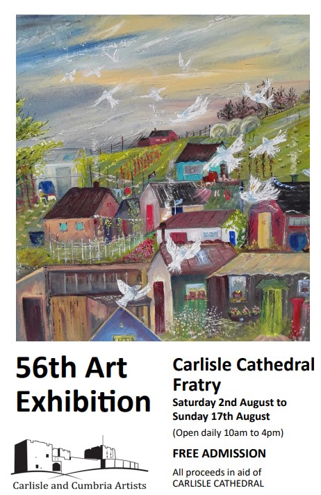 A fabulous exhibition by the Carlisle and Cumbria Artists group in this fabulous newly renovated historic site, an amazing glazed cafe downstairs is available for refreshments. All proceeds in support of the Cathedral.